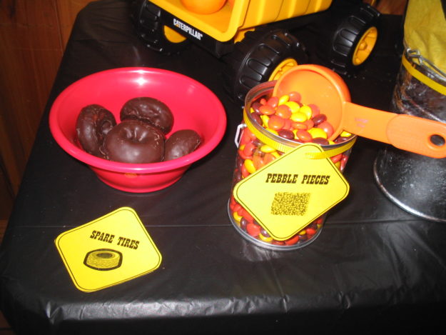 We also played Pin-the-Nail-on-the-Hammer, but I didn’t get a picture of it! (The download, however, is provided at the bottom of this post!) We were planning to play a few construction party games (click here for the great ideas), but everyone enjoyed playing with the toys in the family room and then going outside to knock down a pinata…