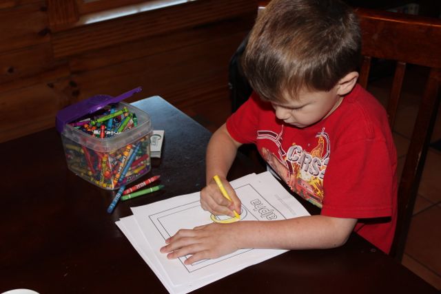 Levi decides to color some of his Greek alphabet before breakfast.