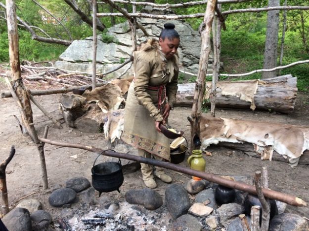 Also at Plimouth Plantation is the 17th-century Wampanoag Homesite, where you will encounter Native People (who are not role players) dressed in historically accurate clothing. Because they are not role players, they answer questions about history, traditions, stories, food, chores, pasttimes, and more – all from a modern perspective. (Historically, the Plymouth colony established their town where a group of Wampanoag People had lived before, but a sickness had killed most of them.)