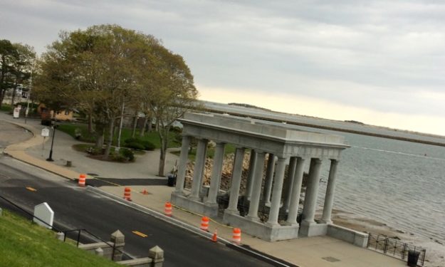 Here it is. The rock that was moved, dropped, broken, moved again, and cemented back together before becoming enshrined in a monument, all because the Pilgrims might have stepped onto it when they arrived in America.