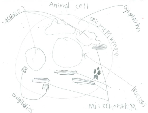 Stephen and David sketched an animal and plant cell while singing their handy-dandy cell songs.