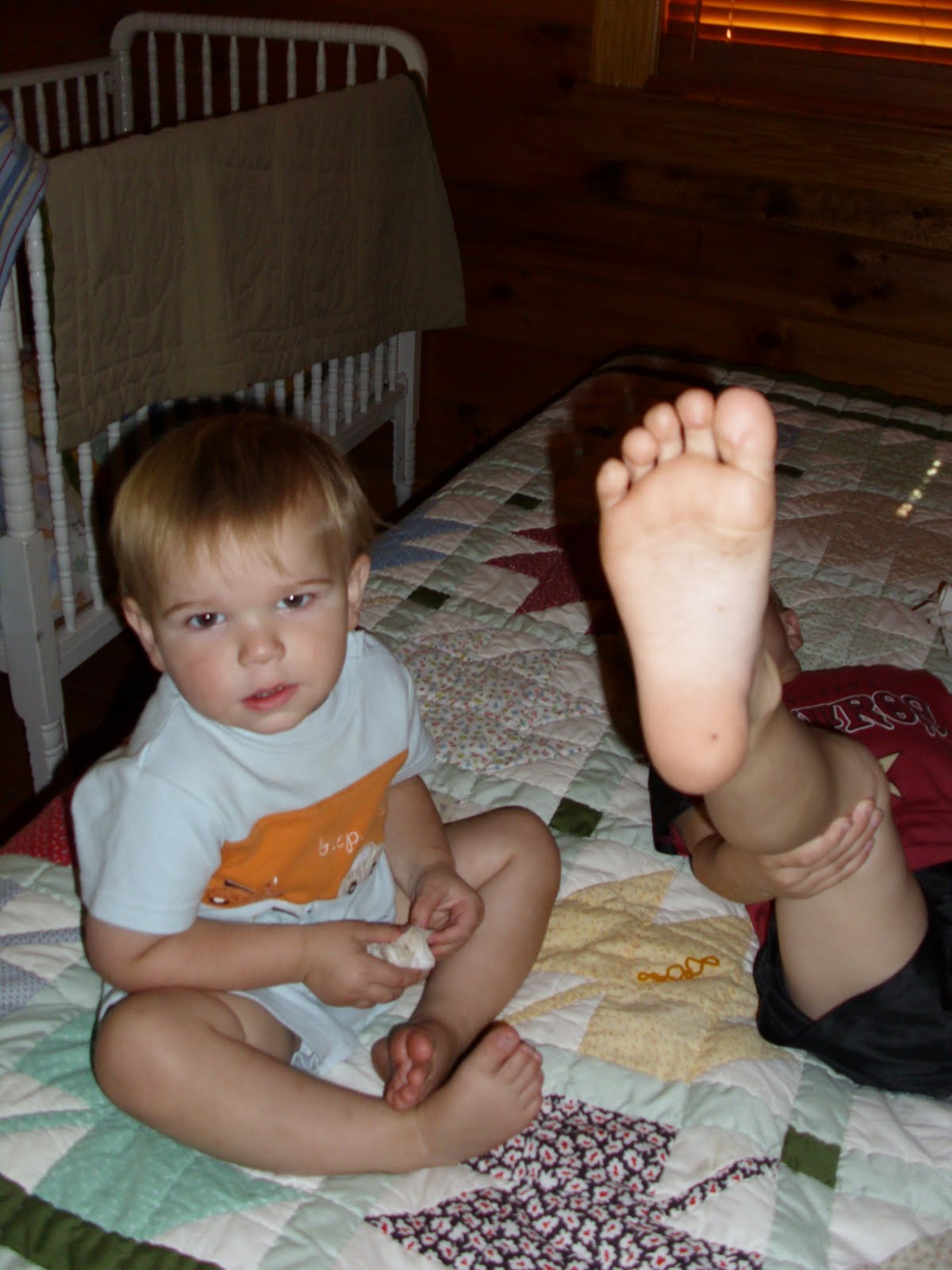Me: “Because you’re dirty. Just look at your feet.”