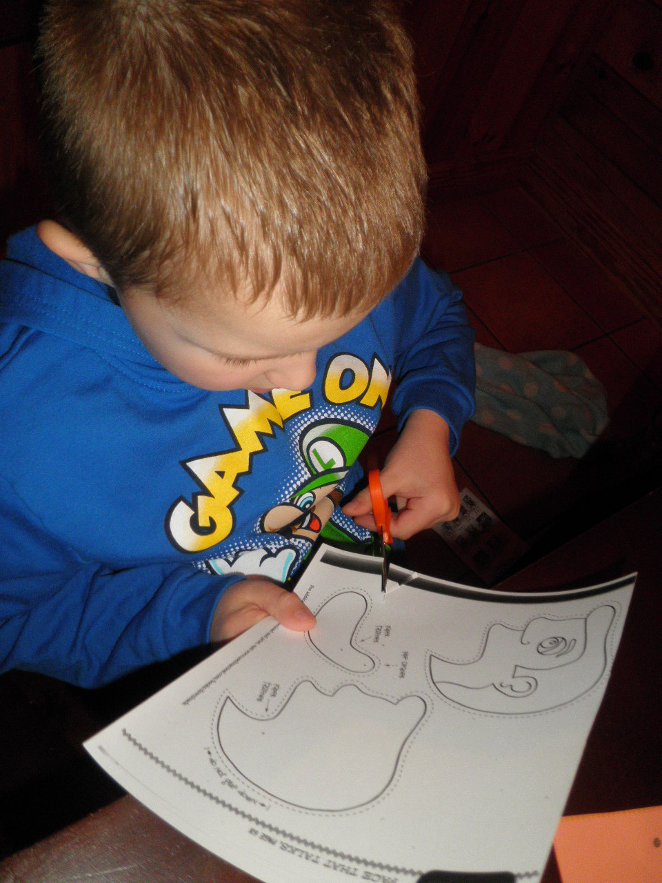 For math, I decided to actually set up and use some of the file folder games listed in our Living Math post. These take a while to cut out, but because I can’t just sit and watch TV without doing something else, I cut out a good portion of it while we were watching WordWorld.