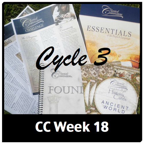 All of the following resources (and more) have already been available (organized by subject) on our Cycle 3 Resources Page. There are several resources on our Cycle 3 Subject Resources Pages that span multiple weeks. You will not find memory work verbiage in my links lists or in my documents.