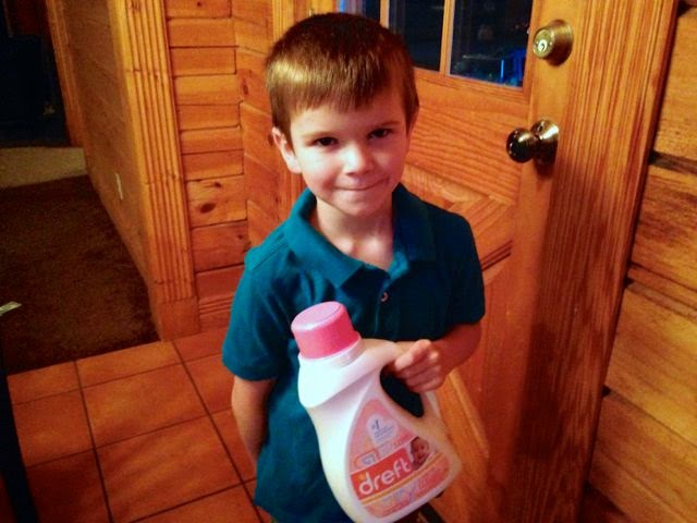 I was informed that I’m not allowed to throw away things like this empty laundry detergent container. It is being used for Levi’s “smelling exhibit.”