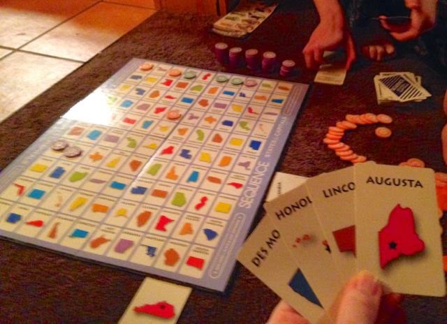 We played States & Capitals Sequence. Our family HIGHLY RECOMMENDS this game! It’s great for teaching state shape recognition and matching up capitals with their respective states! And… it’s fun!