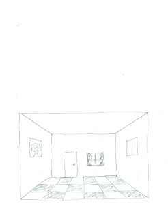 Sketch Book Activity: Download this Perspective Activity Page. Fold in half so that the student can see the one-point perspective guidelines underneath. Trace the outermost rectangle and another rectangle closer towards the middle. Use the guidelines to add photos or windows on the side walls and a tile floor. Then they can unfold the page and draw a door and window on the far side of the room. This sheet may be used for any drawing you wish to show in one-point perspective (train tracks, long country road, etc.)