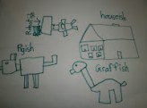 We created sketch books (each made with 7-8 pieces of 8.5″ x 14″ paper, folded into a booklet and stapled at the spine) where the students drew many of their drawings. Each instructional time in drawing started with a story. The children in our home and in our homeschool group LOVED these books!