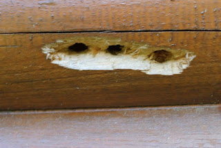 Yep, my friends. It is Bee Battle time at Half-a-Hundred Acre Wood. It’s time to repair and exterminate, as much as I hate to kill these hard-working mama bees. For more about Carpenter Bees (mighty fascinating creatures!) and observations via nature studies on specific critters or plants, visit our Nature Study page.