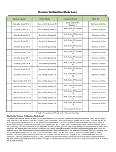 Download the Western Civilization Study Loop (…if you’re using the Calendar Quest Western Civilization Study by Brimwood Press. If you aren’t, instead of using this plan you can simply read a couple of chapters per week out of a volume of Story of the World or another world history book.)