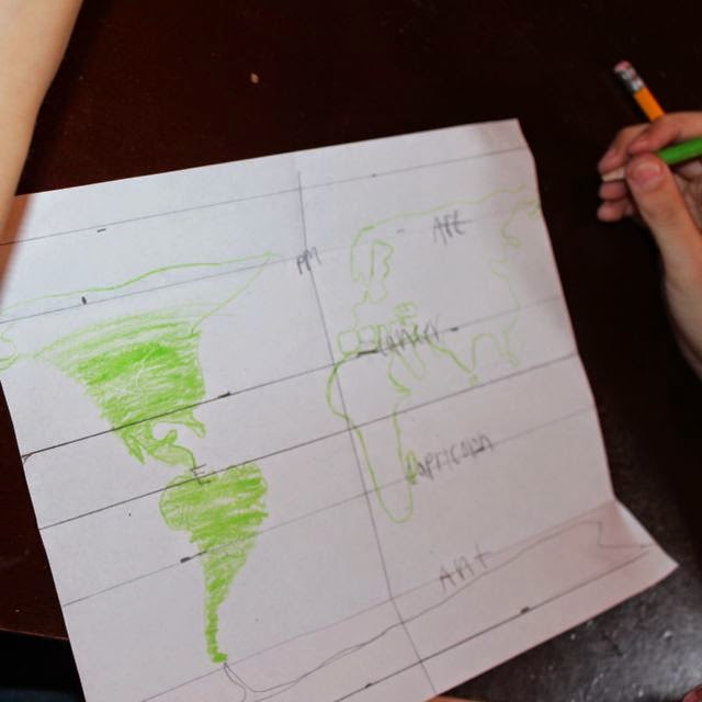 For my youngest two children, we only used the equator and prime meridian as our guideline for learning to create a blob map. You can see those templates here.
