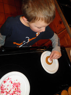 In this case, it’s a small flat or slightly raised cake with icing and hearts on top. Specifically, it’s a pre-packaged, Betty-Crocker type of cookie called “Pumpkin Spice” because it was on clearance at Wal-Mart.