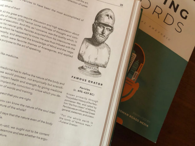 The textbook regularly references the classical authors (e.g., Plato, Aristotle, Cicero, Quintilian, the Ad Herennium) and includes quotes from famous orators throughout history as it pertains to the skills taught in each lesson…
