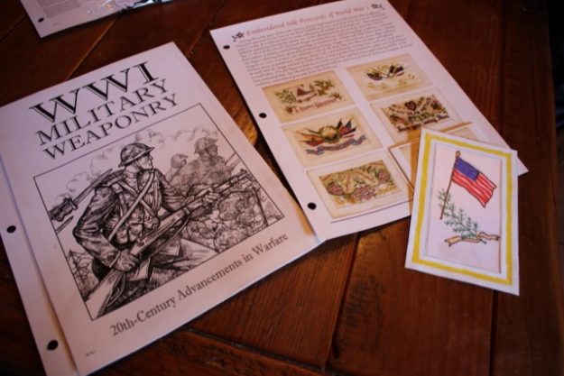 The notebooking & copywork pages, newspaper writing prompts, and engaging projects provided opportunities to study various aspects of World War I, including military weapons, WWI poetry, embroidered silk postcards, and the story of Alvin C York – just to name a few.