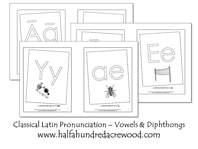 - Click here to go to our Latin Alphabet Coloring Book with matching Latin Alphabet Cards, which contain all the letters and most diphthongs.