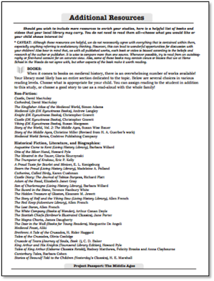 What’s included: A CD which contains a history reading and travel itinerary for each “stop” of our journey through the Middle Ages.