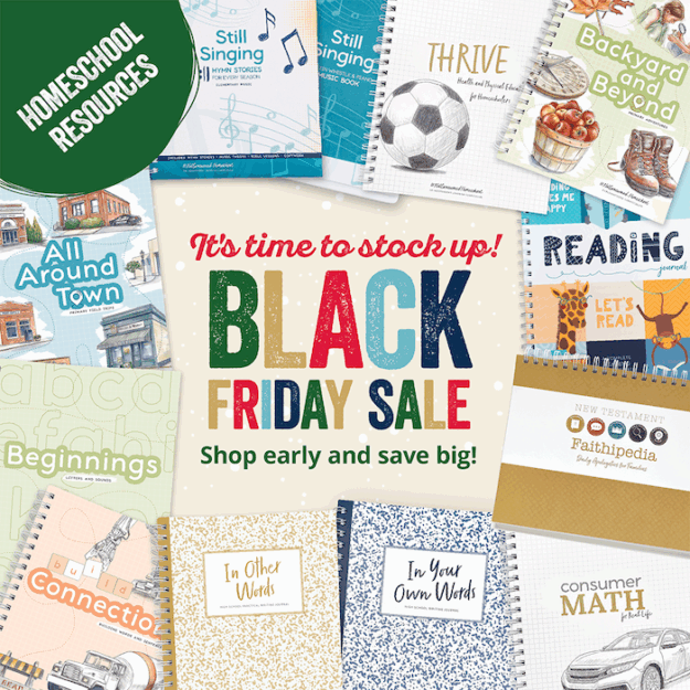 It’s time for our annual sale! Here at Half-a Hundred Acre Wood, you can take 20% off your purchase using the promo code STEWARDS at checkout from now through Monday, December 1. And… receive free media mail shipping when your order reaches $100! If you’re looking for award-winning penmanship curriculum, morning time plans integrating history/geography/science/fine arts, high school lesson plans, or American history-related resources, be sure to check our shop. We have low quantities remaining for many of our physical items (many of which are already heavily discounted), so grab them before they’re gone!