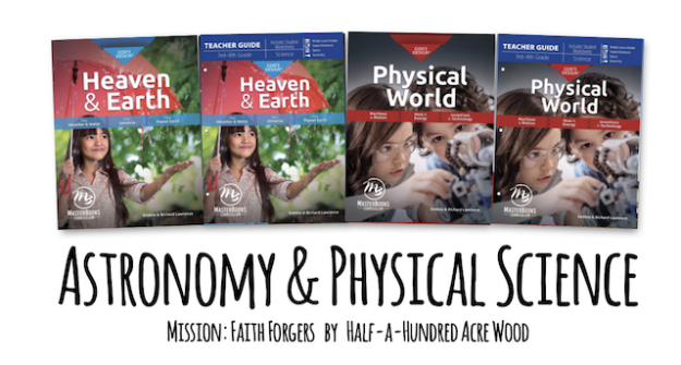 Note that the three volumes of God’s Design for Heaven & Earth – Our Universe, Our Planet Earth, and Our Weather & Water – are available now only as a single combined volume. Our Universe is used in first semester of Mission: Faith Forgers and Our Planet Earth and Our Weather & Water are used in Mission World Wonders. The three volumes of God’s Design for the Physical World – Machines & Motion, Heat & Energy, and Inventions & Technology – are available now only as a single combined volume. Machines & Motion is used in second semester of Mission: Faith Forgers and Heat & Energy and Inventions & Technology are recommended as an alternative science for a second trip through Mission: Faith Forgers.