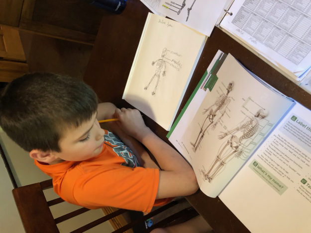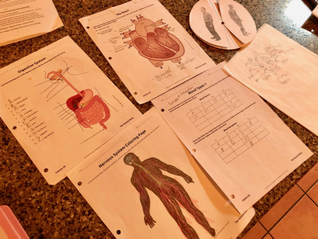 During the fall semester, we completed a study of the human body from God’s Design for Life. Our sixth grader practiced defining, sketching, and labeling (from memory) the different body systems.