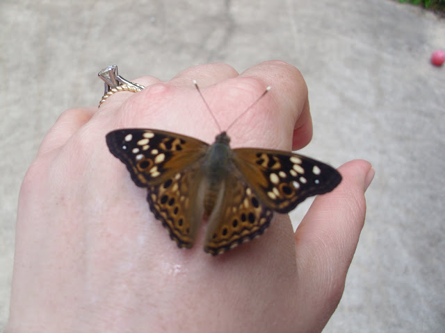 After an on-line search for Tennessee butterflies, we discovered that these are Hackberry Emperors, which meant we had Hackberry trees somewhere around our home. And though we already had the Audubon Field Guides for birds and trees, we decided to purchase a couple of field guides on insects and butterflies to help us in identification. Our favorite field guides have been the Kaufman Field Guides due to the ease of use: