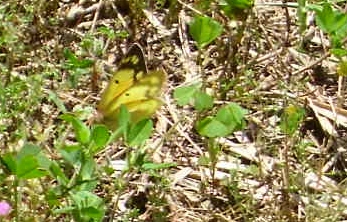 | Clouded or Orange Sulphur. They hybridize, so oftentimes it’s difficult to distinguish between the two species. And it’s really hard to get a picture of them! |