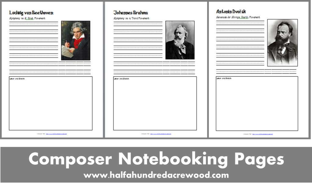 Feel free to use our composer notebooking pages from our fine arts notebooking packets!