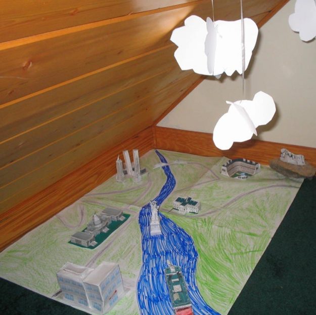 And… just for kicks, I had to pull this one up from the archives, since it has some pretty fun stuff sort-of related to our history studies (like the Statue of Liberty, for instance). This was from last summer when we created “America City” after playing Ultimate I Spy. All of these templates are available on Papertoys.com.