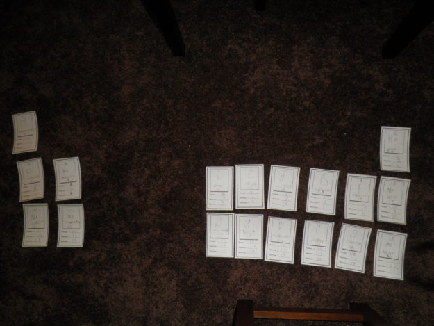 Stephen sorted out the flashcards he’s made thus far, placing each card in its respective family in the Periodic Table.