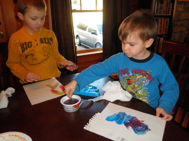 Of course, Stephen couldn’t paint without his brothers also wanting to hone their artistic abilities, so we practiced some more O’Keeffe paintings…