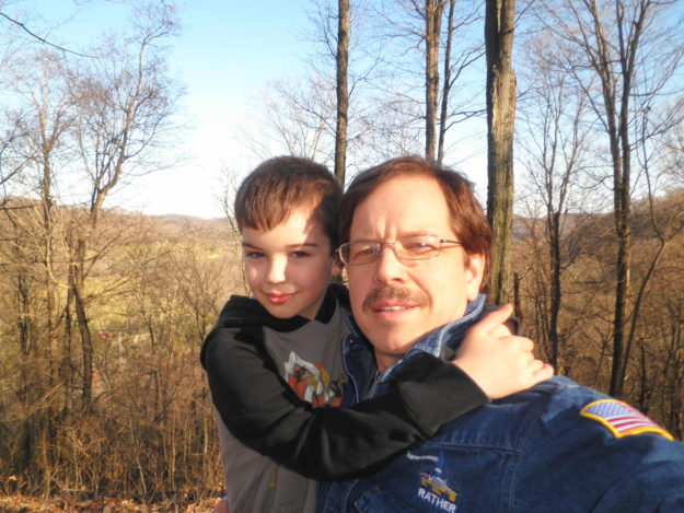 Stephen’s first climb up the ridge surrounding our farm. If you stare long enough you can see the barn through the trees.