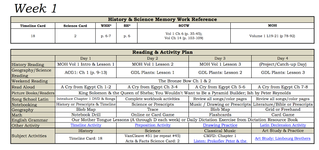 Cycle 1 Resources Activity Plan. If you use our Cycle 1 Resources Page (with weekly links to history, science, etc. resources for enrichment activities), here’s an example of how you might plan to use them over the course of a week.