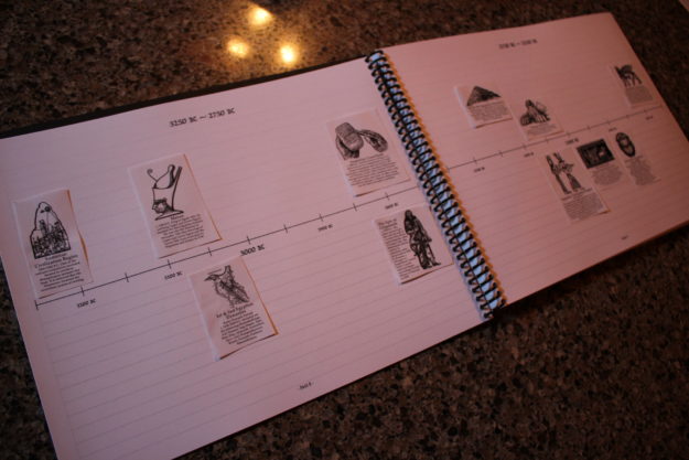 Once we’ve cut them out, we reference either the History through the Ages Suggested Placement Guide or the timeline in the appendix of The Story of the World.