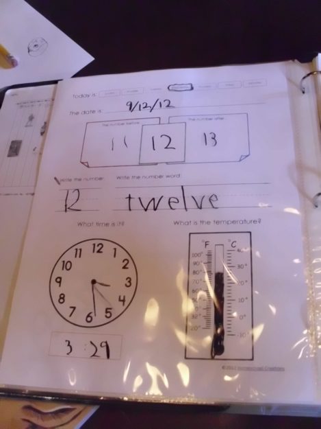 Calendar, weather chart, and copywork pages are consumable. Most everything else is in page protectors so that we can use wet-erase markers for everyday practice. Our notebooks are a concoction of printable resources from our website and calendar templates from other websites as referenced.