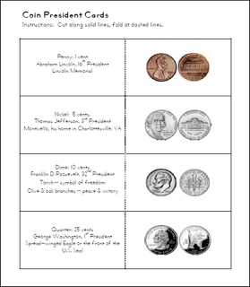 - Last year, we prepared a weekly presentation regarding Presidents on coins and bills using info from this webpage about Presidents on U.S. Currency. We also created these Coin President Cards as a visual aid for the presentations.