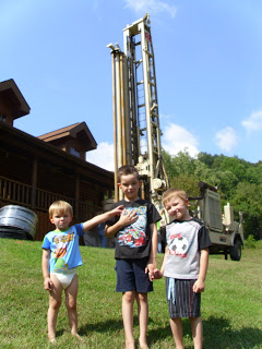 On Monday I was wildly racing to prepare for my first day of class (which was Tuesday). To add a little spice to my already frantic pace, a drilling rig showed up to drill three holes about 10 feet from the house for the installation of a geothermal unit.